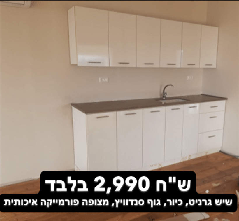 **חומרי גלם*: בכל הנוגע לחומרים, התמקדו בעמידות וקלות תחזוקה. בחר חומרים כמו פורמייקה לחזיתות ומשטחי שיש קוורץ מכיוון שהם מציעים איזון בין עלות-תועלת לאסתטיקה.